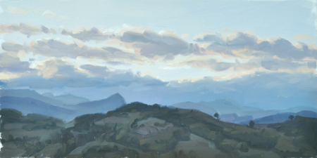 J’aime la poésie des sujets simples comme les chemins autour de mon village, le bord d’une rivière, un nuage au-dessus des monts… Je peins à l’huile, « alla prima »